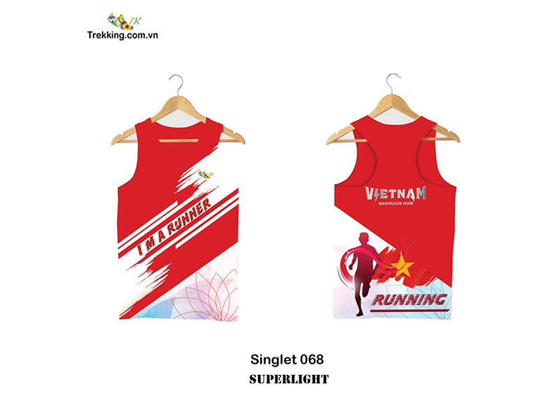 Mẫu áo chạy bộ ba lỗ Vietnam Marvelous Team Singlet 068 có in Decal phản quang nổi bật cho các anh chị Runners tham khảo mặc trong các sự kiện hè đang sôi nổi.
